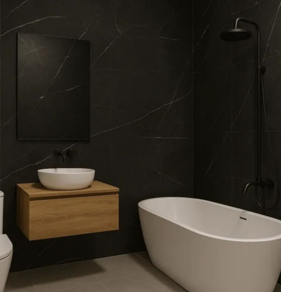 De Obsidian Vein panelen brengen de tijdloze uitstraling van zwart marmer naar jouw interieur. De donkere basis met zachte witte aders zorgt voor een krachtige maar elegante look – ideaal voor high-end interieurs, horeca of stijlvolle cinewalls.