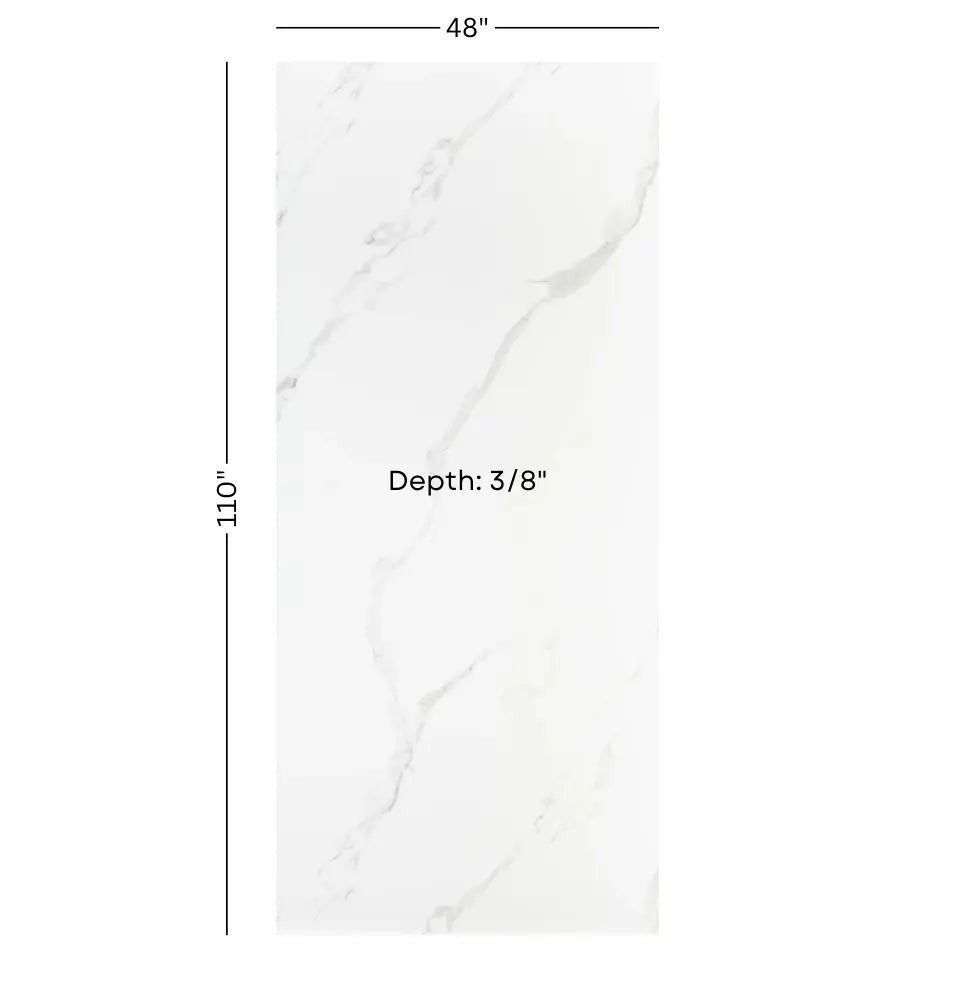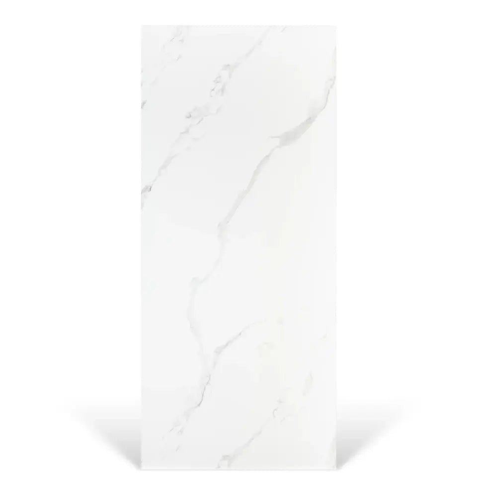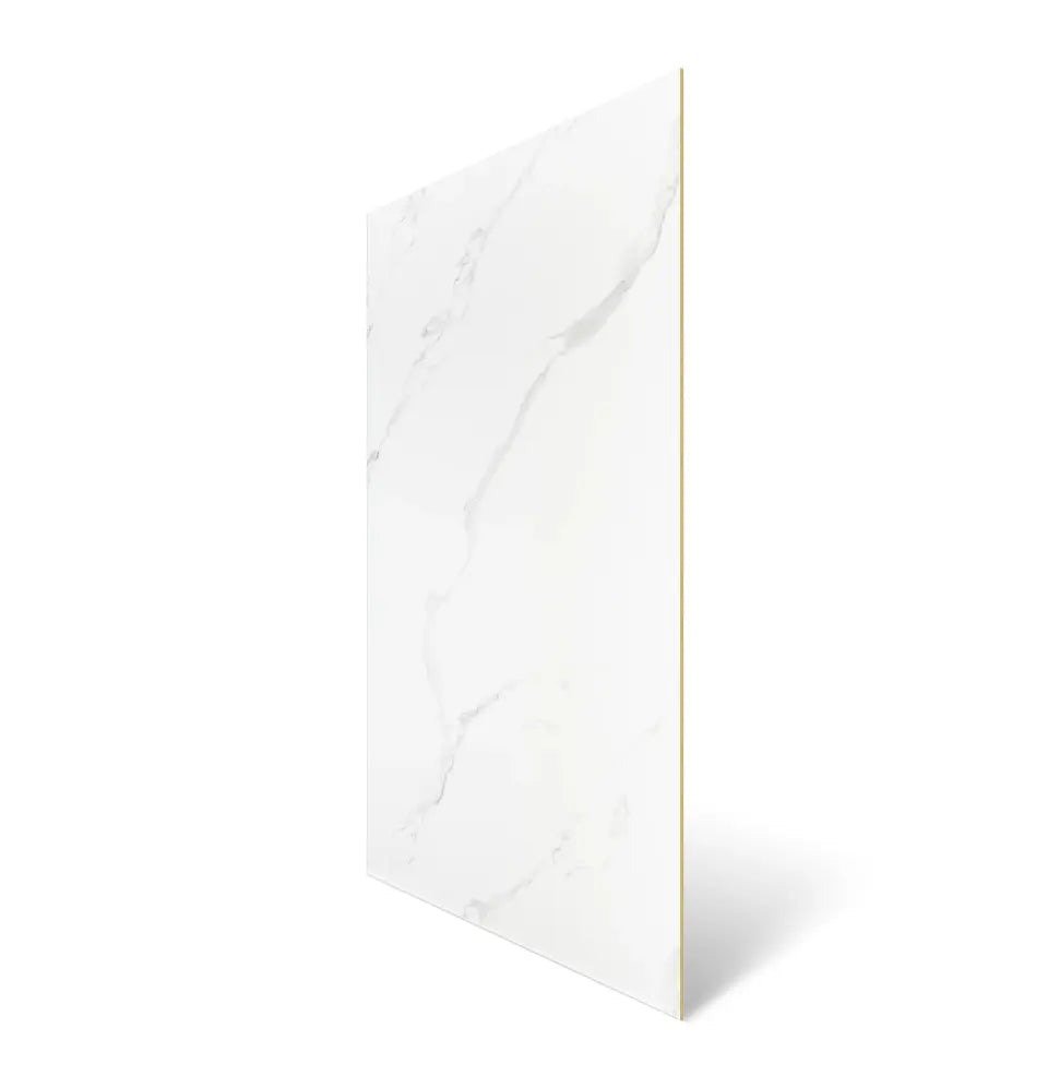 Calacata White Enkel PVC Wandpaneel: Met een dynamische reeks van aders in licht- tot middengrijs tegen een onberispelijke witte achtergrond, geeft dit paneel elke kamer de elegantie van klassiek marmer.